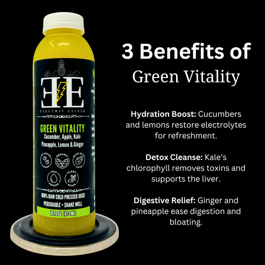 Welcome to Electric Elixir, where we craft nature's finest ingredients into delicious, nutrient rich, cold pressed juices. Energize your day and boost your health with every sip!